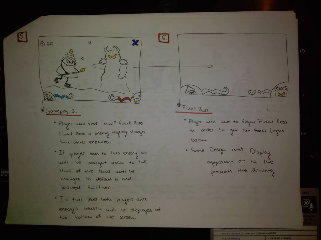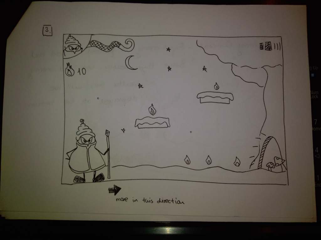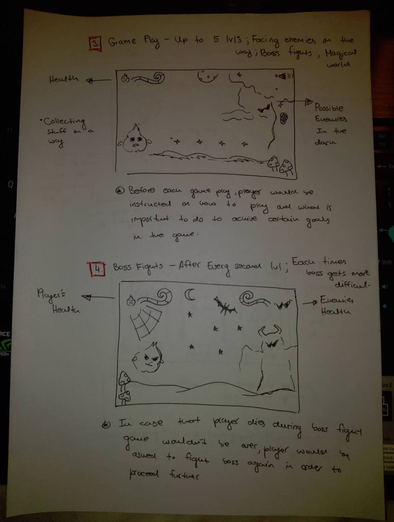 For creating paper prototype of our game, we highly referred to the research we done for this project, focusing on what users would like to see from our game. In this section I will show three paper prototype iterations done for this project. First one will show our idea before we took into account the research and what users want. Second one will show iteration done based on user information and third one, will also focus on user wishes but would not include many details – as we wanted to see what would user get from it, and if user thinks the same as us, prototype is successfully created.