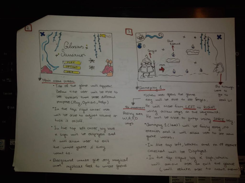 Second iteration of the prototype focused highly on what users want to see from our game. As I said before, we decided to remove features such as three players choice and different game play experiences, so looking at this prototype you can see that we decided to stick with the character of grumpy guard as protagonist of our game. We named him Sergio and decided to make him a very grumpy little man (Image 1, from the gallery above). As we can also see from the images above, game had a completely different title in this prototype and then we decided to change it from Glorious Savior to Final Savior. We also explained his objectives in the game and how will he succeed in them. If we look at the gallery above we can see that this prototype iteration is very detailed and gives users a complete explanation of how game works and what are the possible outcomes if scenarios end up different from what we, as developers are planning to make them look. In our opinion, this seem like a nice prototype since we are creating a game and users do need to know how to play it (have manual for it) in order to do well in a game play. On the other hand one of the lecturers suggested us how we should focus on creating a prototype that will allow user to figure out by himself/herself how to navigate the game and not know what will happen in each scene and this, will lead us to our third and final prototype iteration.