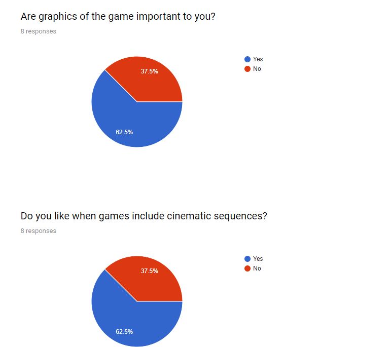 62.5% of participants said that game art is important to them, also the same percentage of participants said that they would love cinematic sequences to be included in the game.