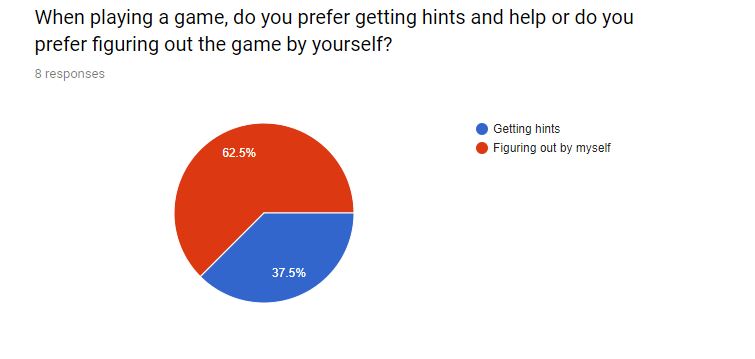 62.5% of the participants said that they like games which challenge them, meaning that they don’t like getting hints for solving tasks in the game.